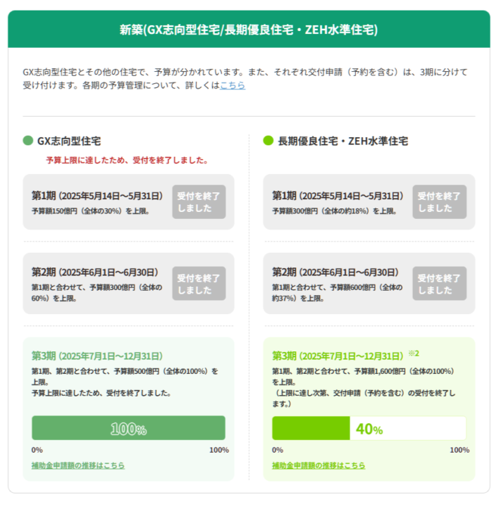 ※GX志向型住宅の補助金申請は、R7.7.22に予算上限額に達したため、終了しています