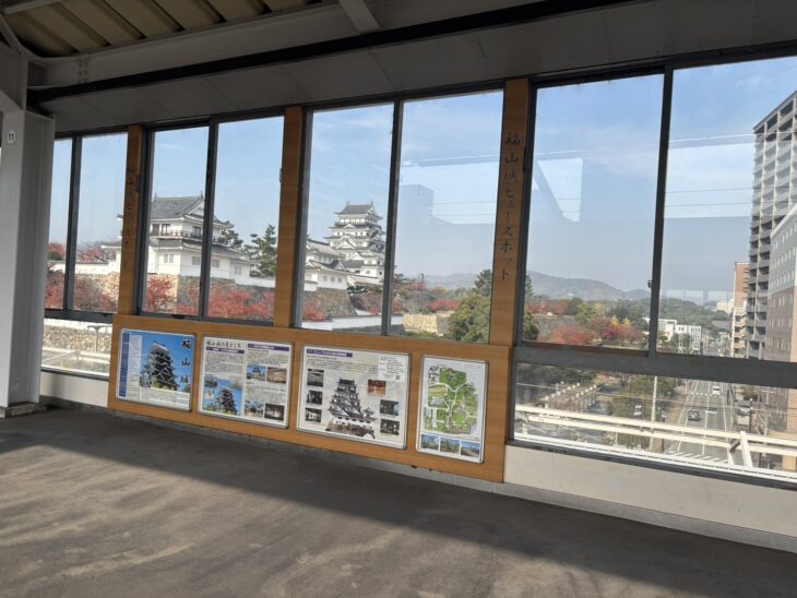 福山駅のホームから福山城が見えるというロケーションにびっくり。