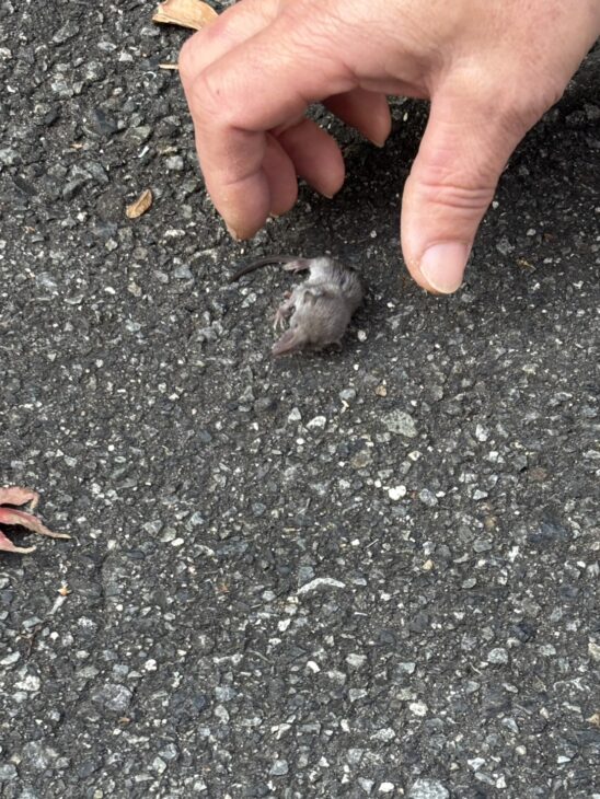 猫ちゃんは、もう一度咥えたかったようですが、モグラの赤ちゃんは何とか逃げ切った模様。